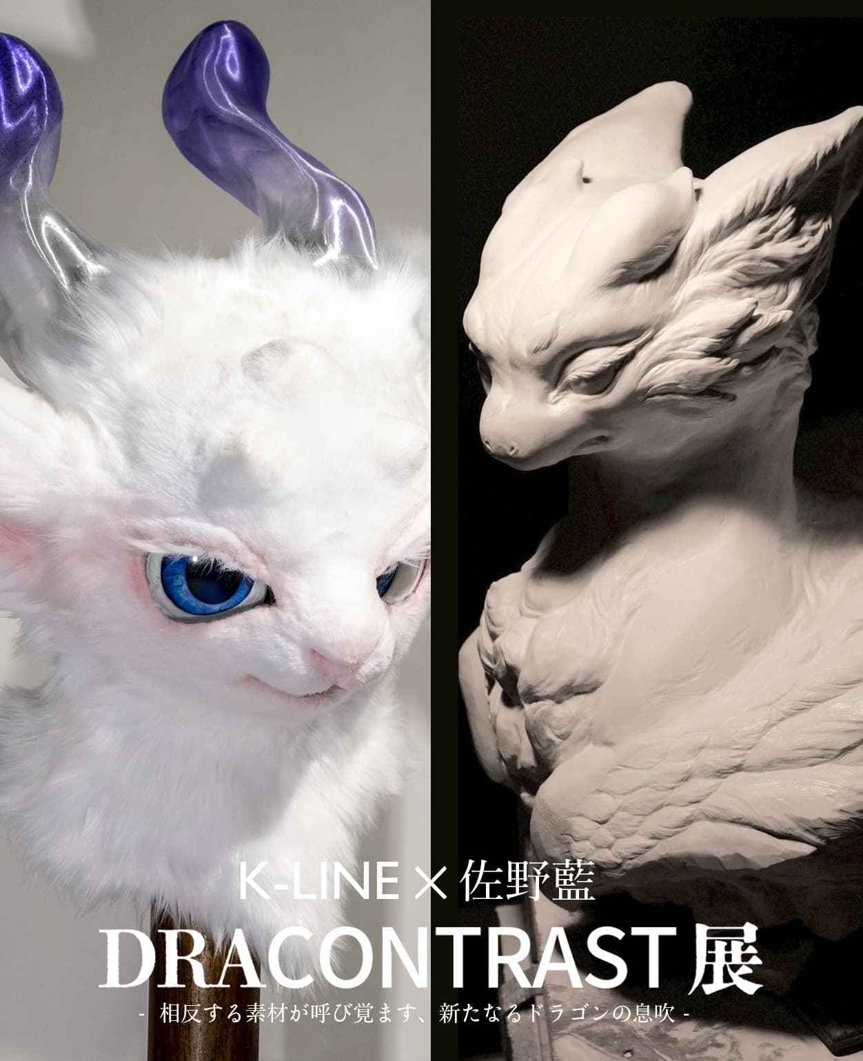 本展は、彫刻家・佐野藍と、キャラクター造形を核とするアートユニット K-LINE (EIZIN, Rady) による、素材と手法の「対話」を主題としたコラボレーションです。