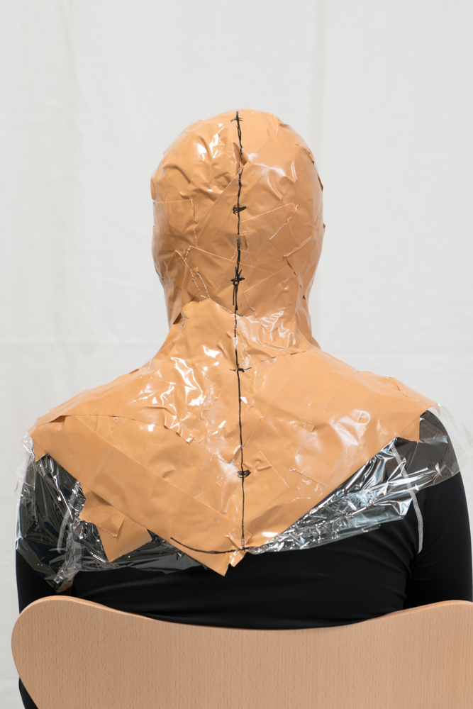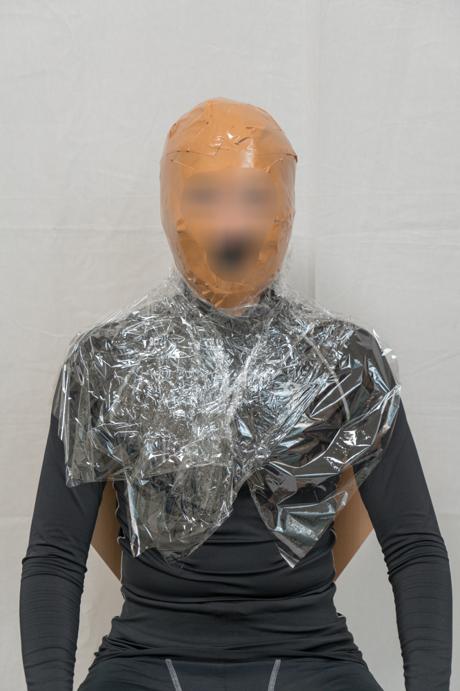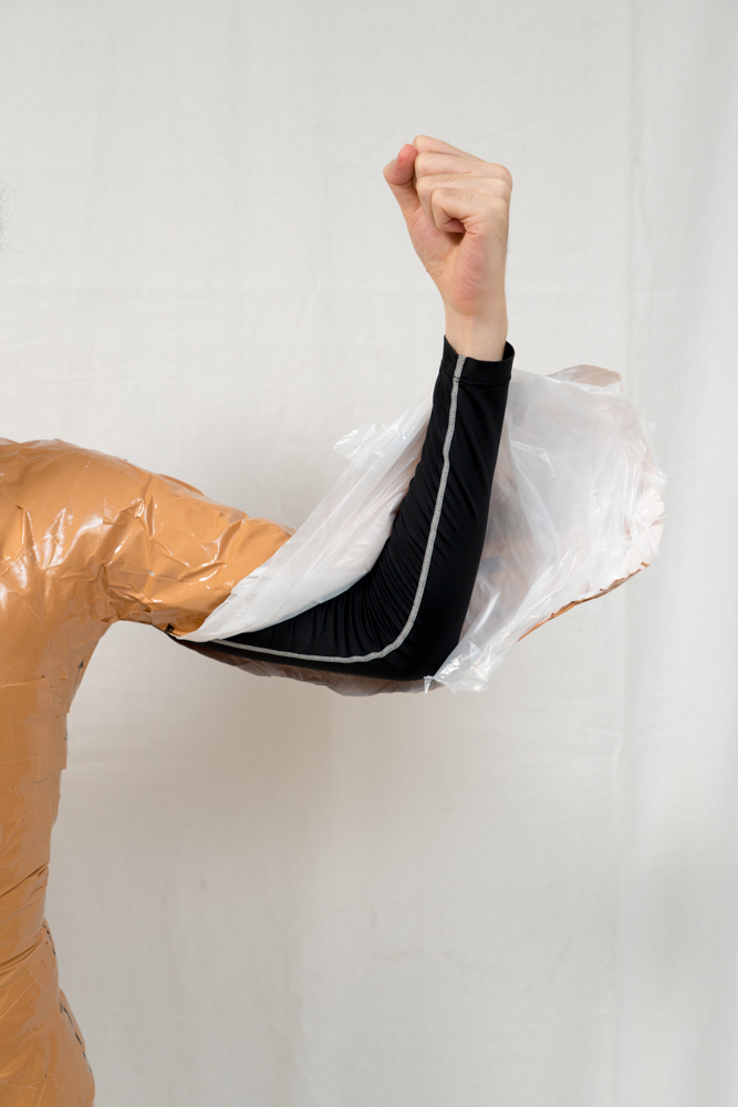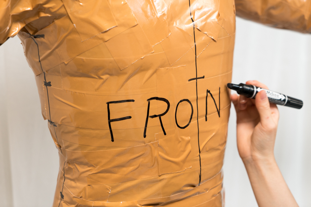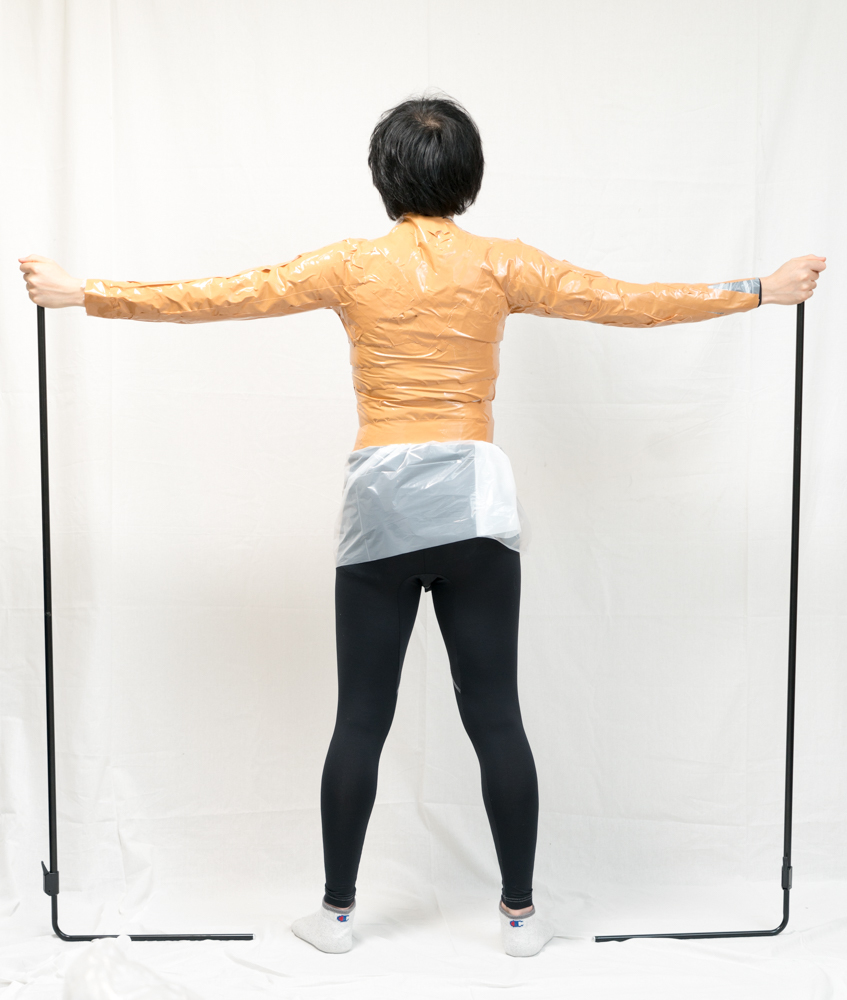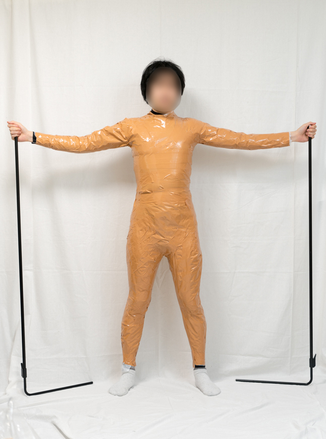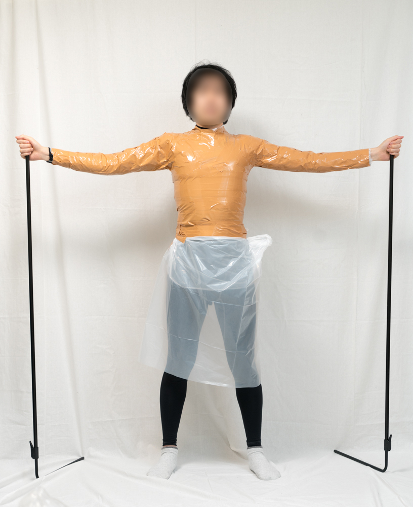 We recommend that you use clothes that are tight fit on the body as much as possible when making your duct tape body. Compression garment or full-body tights are highly suitable.